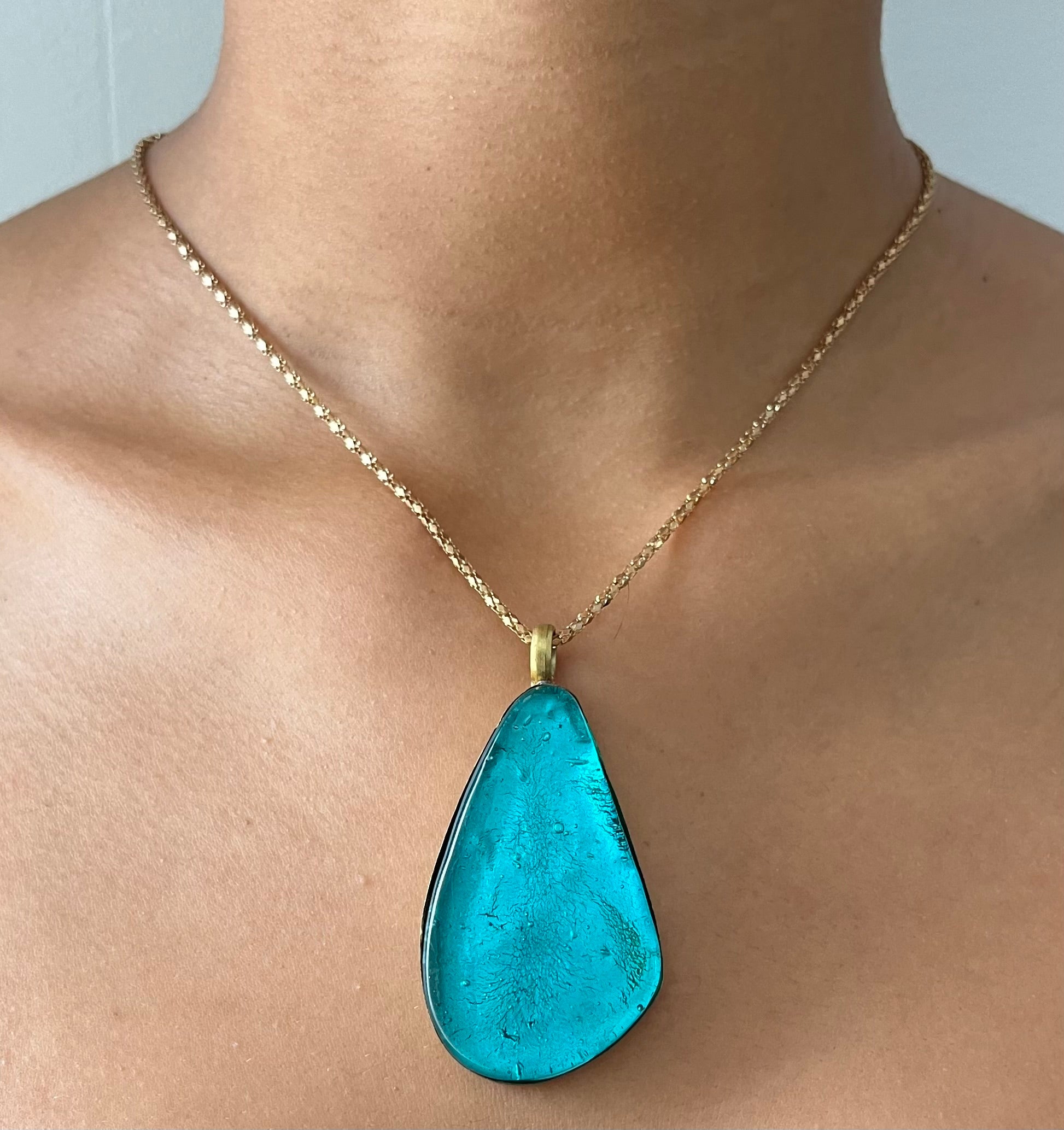 • Goldfarbene Kette mit türkisfarbenem Anhänger