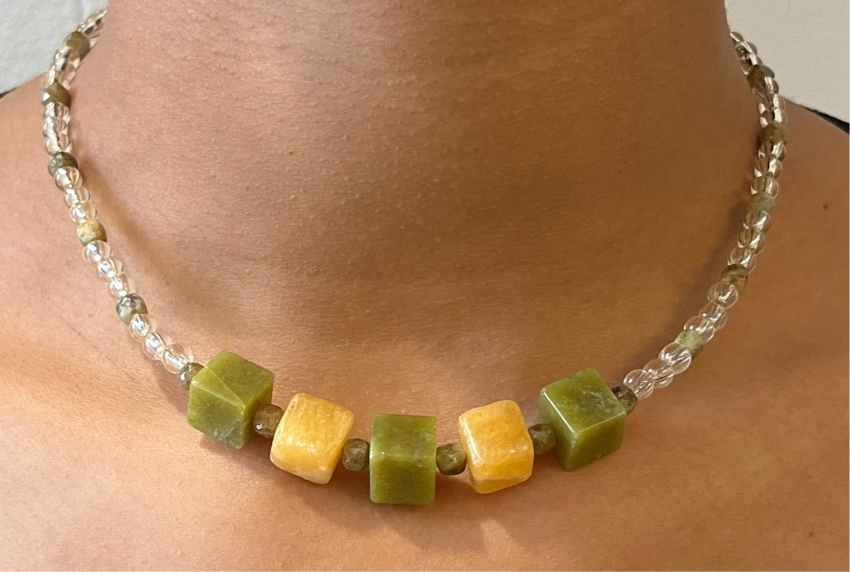 • Schöne Handmade Halskette mit auffälligen Quadratischen Halbedelsteinen