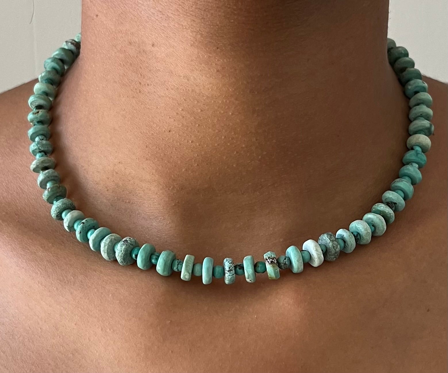•Vintage Kette mit Sterling Silber Verschluss und blau/grünen halb Edelsteinen