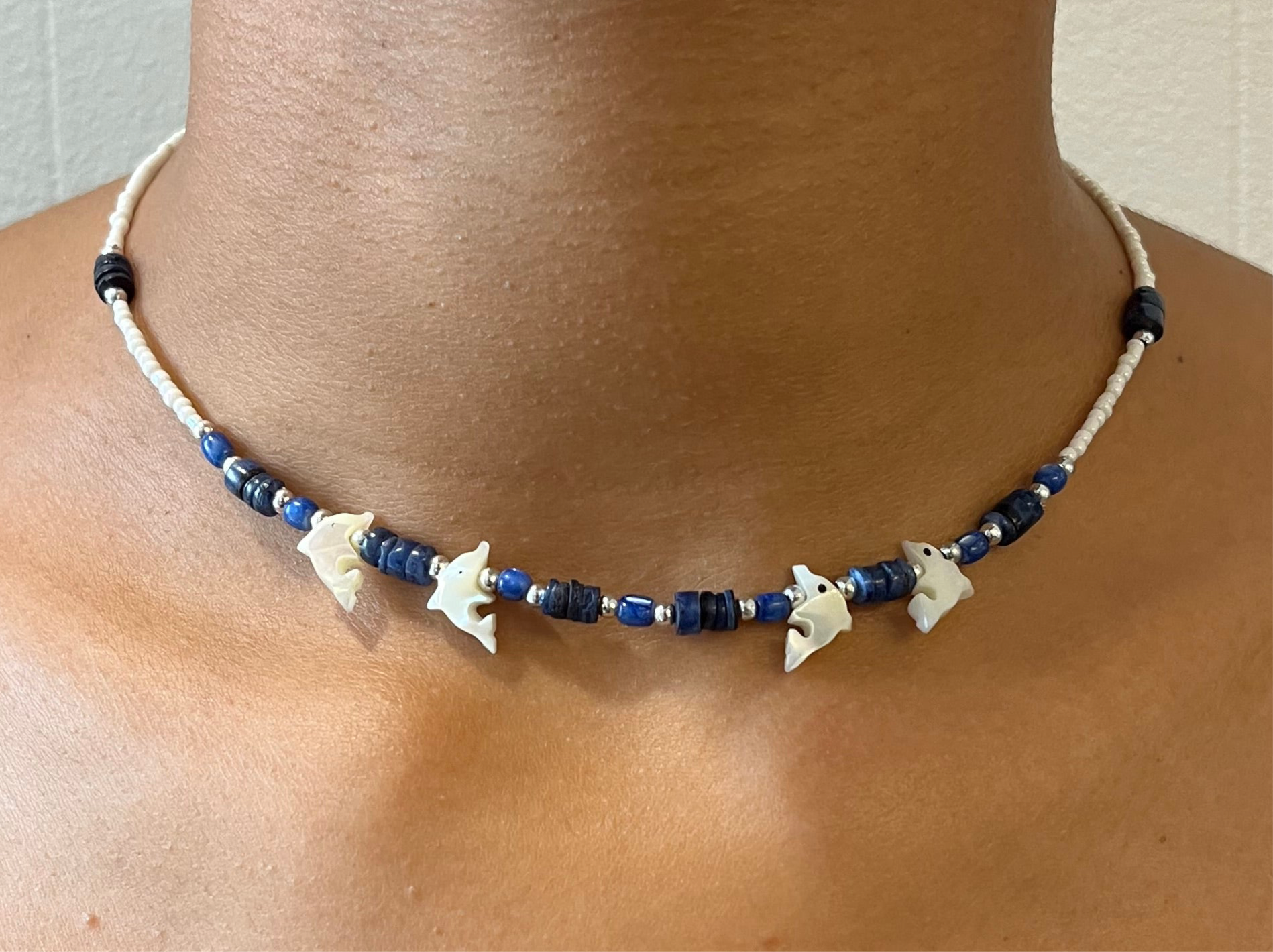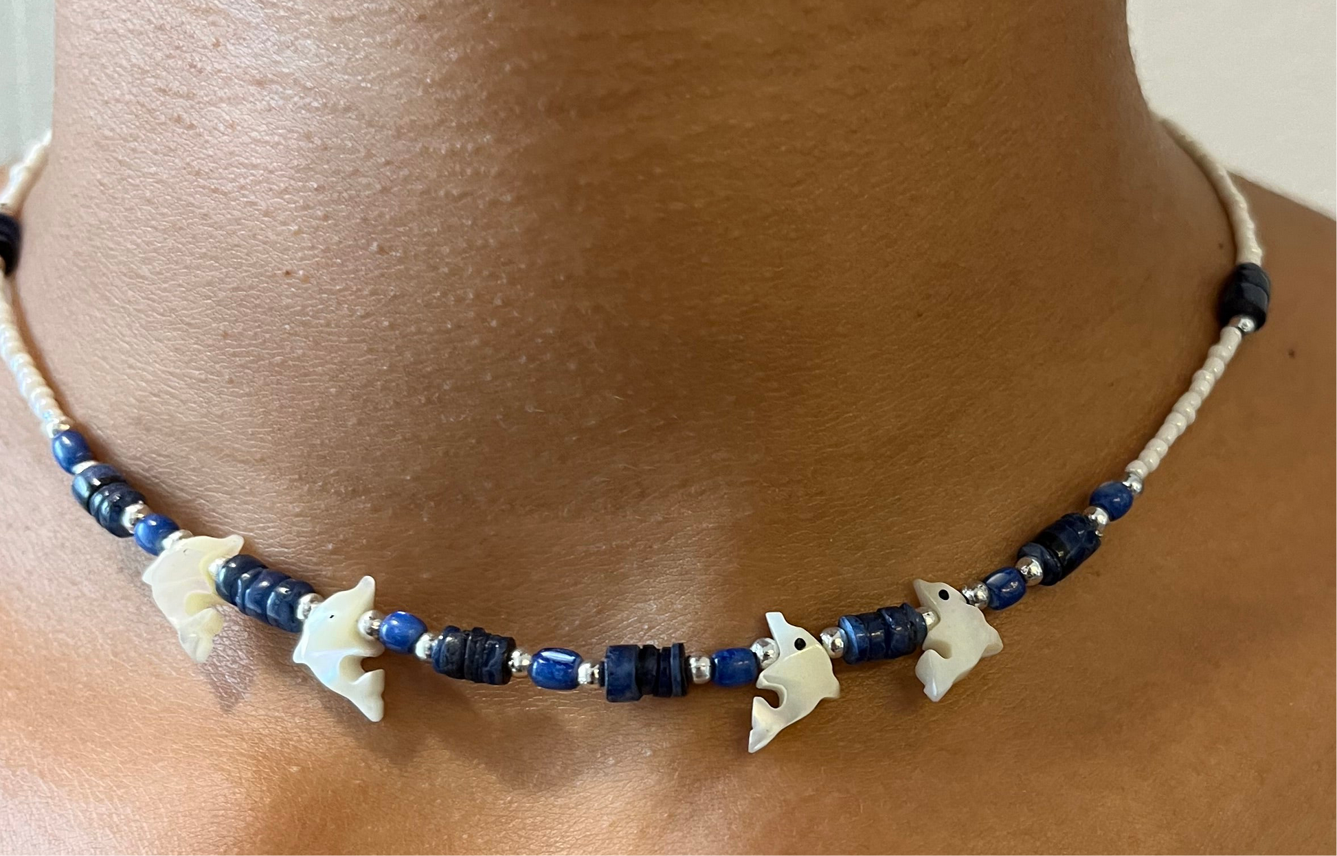 • Hübsche Vintage Halskette mit niedlichen Delfine Perlen