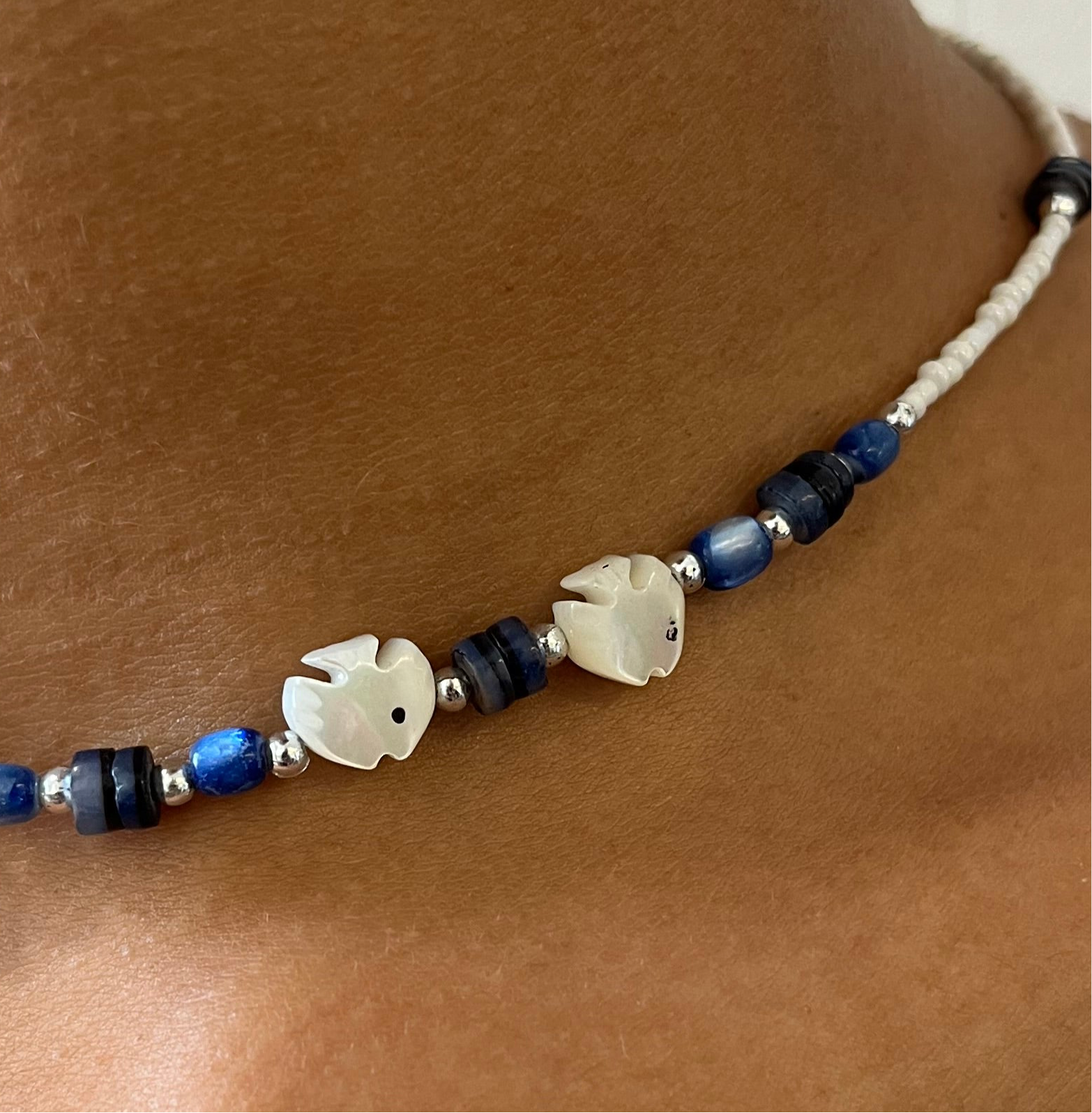• Hübsche Vintage Halskette mit niedlichen Fisch Perlen
